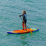 This is the second time we’ve tested an O’Shea inflatable stand up paddle featuring the brand’s QSx (quad stringer technology). The 10’6 reviewed here has two stiffening stringers on the deck and hull which increases rigidity, doesn’t add unnecessary weight and won’t affect the overall price too much. In fact, the light feeling nature of O’Shea’s iSUPs continue with their latest batch of stand up paddle sleds being super feather esque – great for all paddlers. To prove this further our little test team helper could easily lift the 10’6, and he’s only three years old! If that doesn’t tell you something then we don’t know what does…"